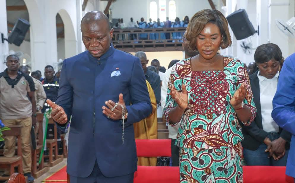 Au cours de cette messe, le président Brice Clotaire OLIGUI NGUEMA a rendu grloire à Dieu pour le bon déroulement des célébrations du deuxième anniversaire du coup de libération du Gabon.