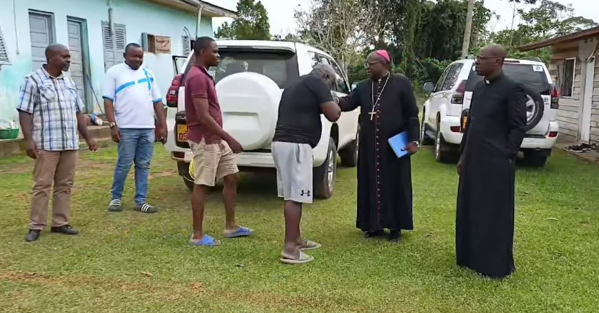 Mgr Jean Vincent ONDO EYENE, évêque d’Oyem s’est rendu à la paroisse Saint Pierre et Paul de Bissok- Centre le lundi 26 mai 2025, où il est allé s’acquérir des réalités des dégâts causé par l’orage dans la matinée du samedi 24 mais2025 dernier. L’orage à son passage a arracher toute la toiture de presbytère paroissiale.