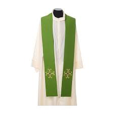 Du latin stola ou du grec stolè : « vêtement de dessus ». L’étole est l’insigne vestimentaire propre à ceux qui ont reçu le sacrement de l’ordre. Il s’agit d’une longue bande d’étoffe qui comporte deux pans égaux ; elle est assortie aux couleurs liturgiques des autres vêtements du culte. L’évêque et le prêtre la passent derrière le cou et laissent pendre parallèlement ses deux bandes sur le devant ; le diacre la porte en bandoulière, à partir de l’épaule gauche : un point de couture ou un nœud, situé vers le bas, lie les deux pans de telle manière que l’étole traverse en diagonale tout le corps, devant et derrière.