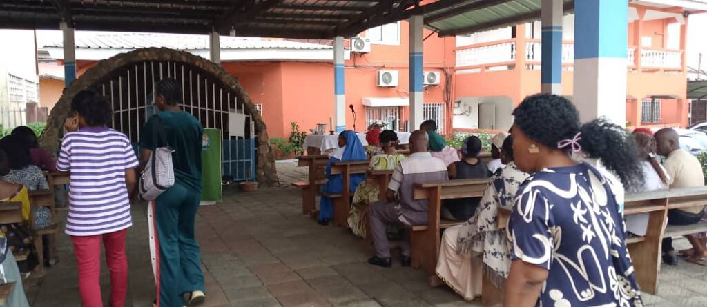 Le mardi 4 mars 2025, c’est l’abbé Ferland Gaël NDONG ZONG, aumônier de ces structures qui a présidé la célébration eucharistique à la grotte mariale.
