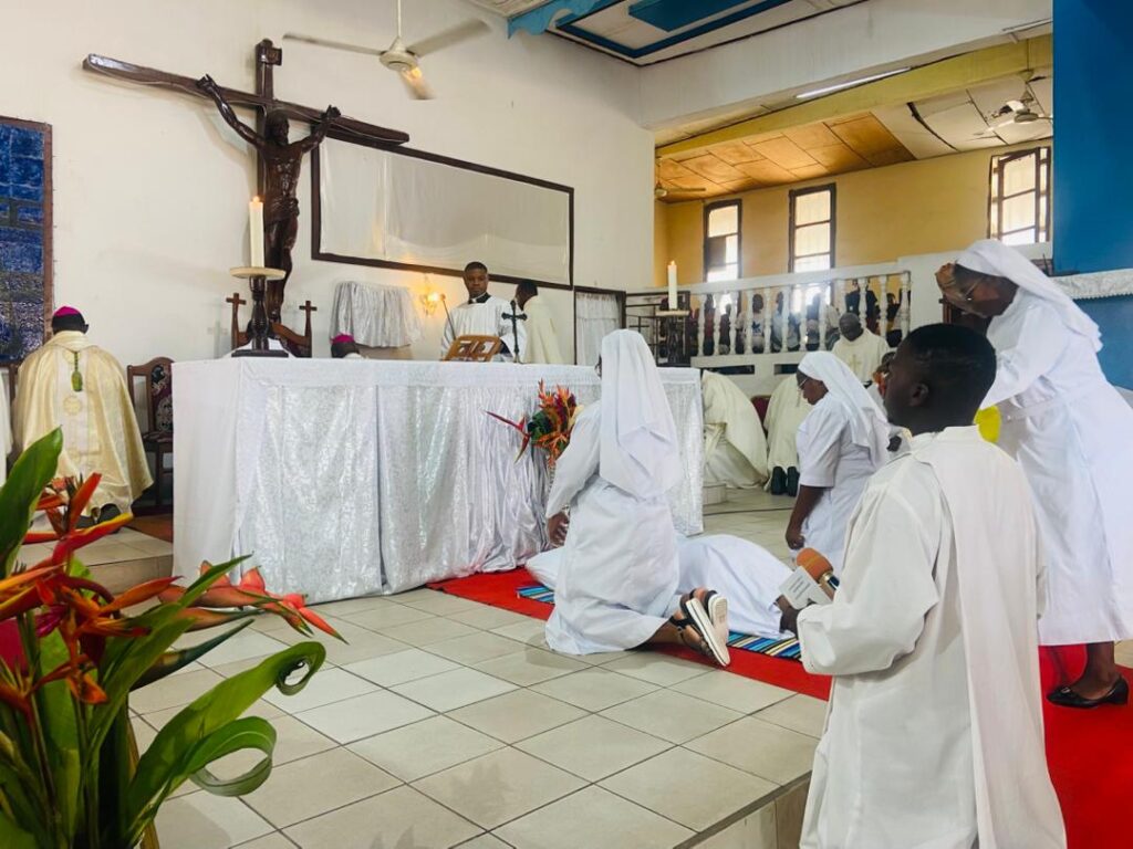 S’engager à servir Dieu à la suite du Christ demeure n’est pas toujours facile à vivre face aux vicissitudes de la vie, dans son homélie Monseigneur Jean Patrick IBA-BA a invité la nouvelle Sœur consacrée à imiter le Christ et à se mettre au service des autres tout en plaçant Dieu au premier plan, « Aimer Dieu c’est s’abandonner soi-même et le mettre à la première place », a t-il insisté. C’est donc devant Mère Rose Marie NFONO:, nouvelle supérieure générale de la Congrégation des Soeurs de Sainte Marie du Gabon que Sœur Madeleine prononcé les vœux perpétuels en exprimant le désir ardent de servir Dieu. Notons que Sœur Madeleine LIKUNDU-OLONGE est d’origine congolaise et s’est consacrée dans un don total au Seigneur dans cette famille religieuse de droit diocésain au Gabon.