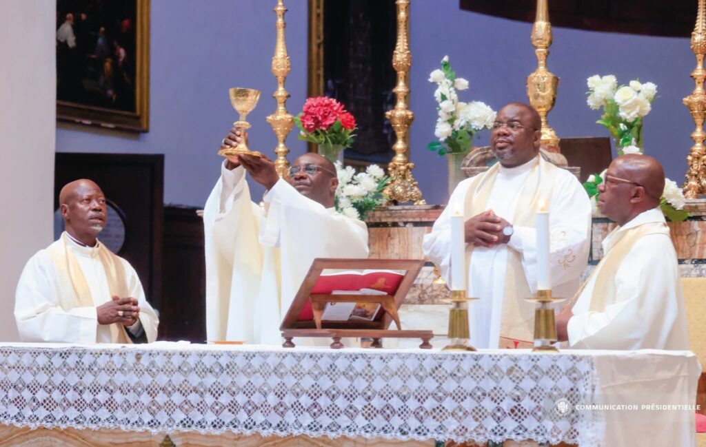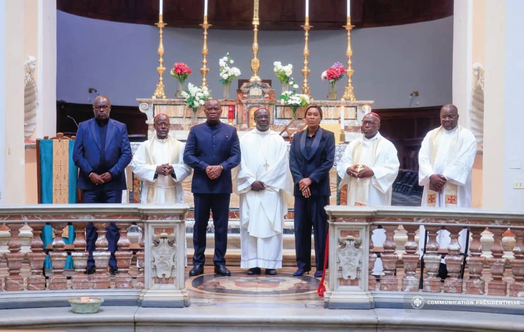 Son Excellence Mgr Ephrem NDJONI a présidé une messe pontificale à Rome ce samedi 1er novembre 2025.à l’occasion de la solennité de la Toussaint. Une messe concélébrée par leurs Excellences Jean Vincent ONDO EYENE, évêque du diocèse d’Oyem et Mathieu MADEGA LEBOUAKEHAN, évêque du diocèse de Mouila. Au nombre des fidèles le chef de l’Etat Brice Clotaire OLIGUI NGUEMA et son épouse.